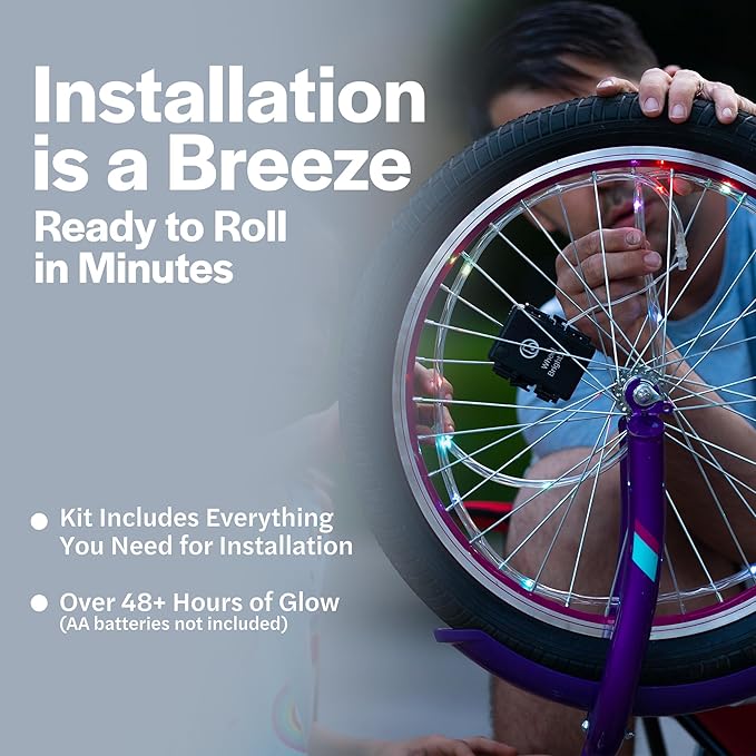 - INSTALLATION IN A SNAP - Our easy-to-install bike spoke lights are battery-powered and ready to go. Perfect as kids bike accessories for boys, and girls of all ages, and even bike enthusiasts at raves like burning man. Ride and shine in style