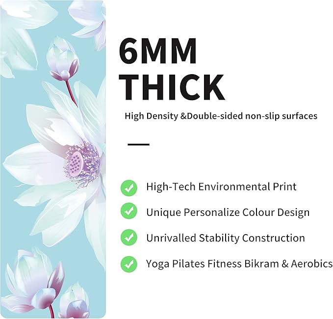 nuveti Yoga Mat Print Extra Thick TPE Non Slip Fitness Exercise Mat with Carrying Bag,72"x24" Extra Thick 6MM Exercise & Workout Mat for Yoga, Pilates Fitness and Floor Exercises