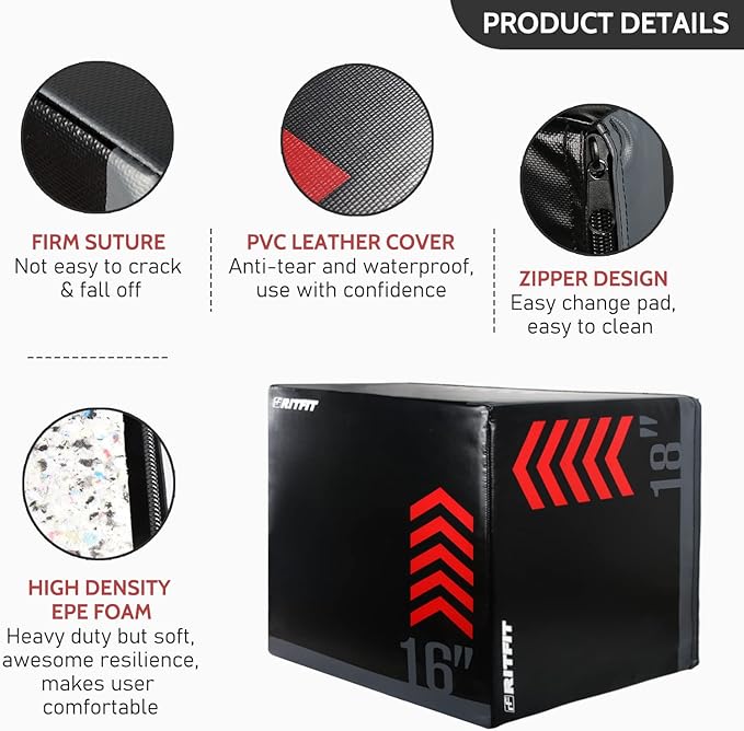 RitFit 3 in 1 Extra Firm Soft Plyo Box Foam Plyometric Box-30”x24”x20”-20"x18"x16" Heavy Duty High Density Foam Jumping Box 3 Sizes with PVC Cover,Platform for Home Gym Fitness, 440lb Weight Capacity