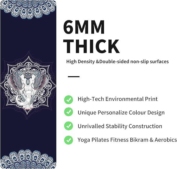 nuveti Yoga Mat Print Extra Thick TPE Non Slip Fitness Exercise Mat with Carrying Bag,72"x24" Extra Thick 6MM Exercise & Workout Mat for Yoga, Pilates Fitness and Floor Exercises