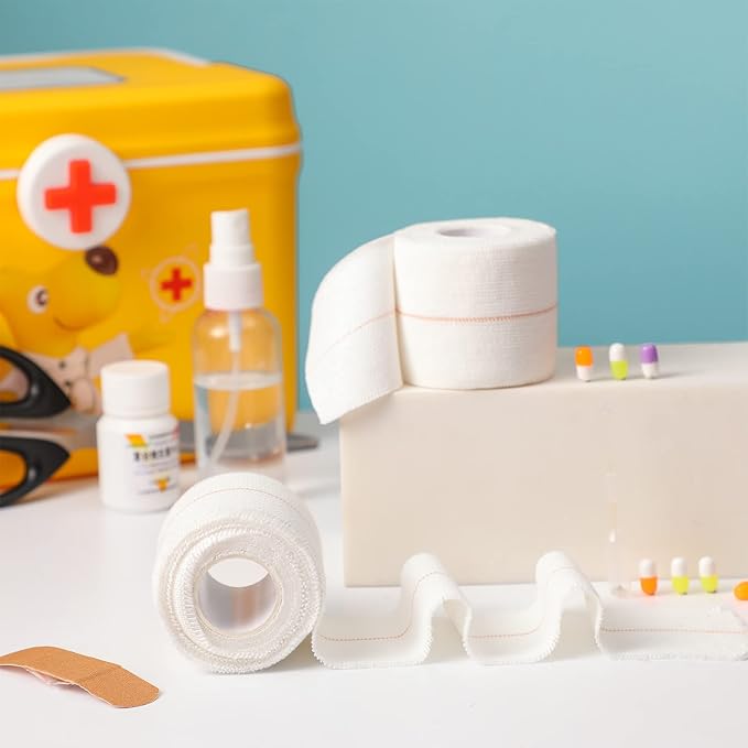 - High elasticity: soft cloth, porous construction, red line centered on backcloth, and low-unwind tension, can be applied to where pressure dressings requiring elasticity are needed, helps to maintain constant controlled pressure, comfortably ensures a custom fit around hard to tape areas