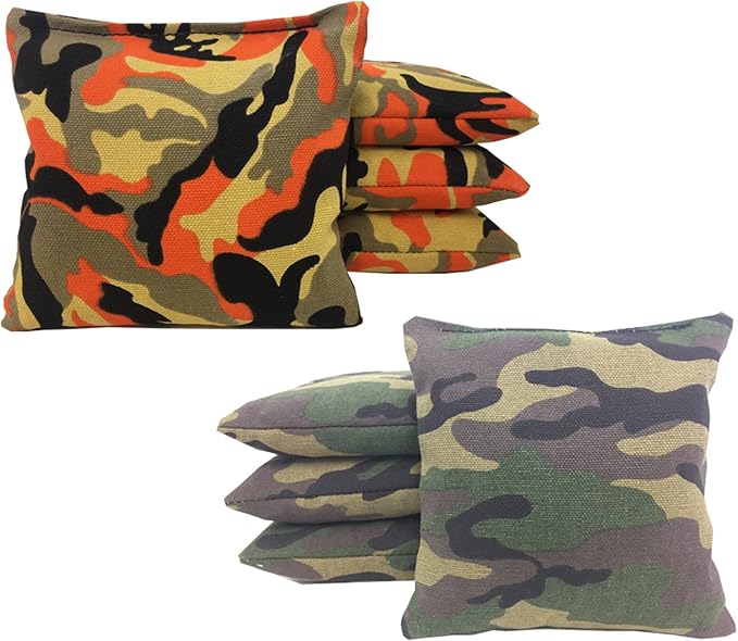 - 8 BEAN BAGS & CARRYING TOTE INCLUDED – Each Set comes with 8 Regulation Size Cornhole Bags (4 of each color). Bags Measure 6”x6” and are Filled with 15-16 ounces of Whole Kernel Corn. Made with Heavy Duty 12 oz Duck Canvas & Double Stitched for Extra Durability.
