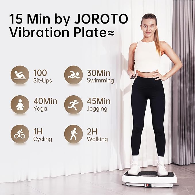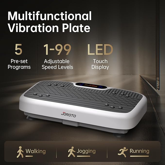 - 【Efficiency Meets Convenience】Experience the perfect fusion of efficiency and convenience with the JOROTO vibration plate, designed for effortless home workouts. Boasting 99 adjustable intensity levels and 5 distinct vibration modes, it lets you customize workouts to your fitness level and goals. Even those with limited mobility—including sedentary individuals and older adults—can easily incorporate exercise into their routine while enjoying TV or music at home.