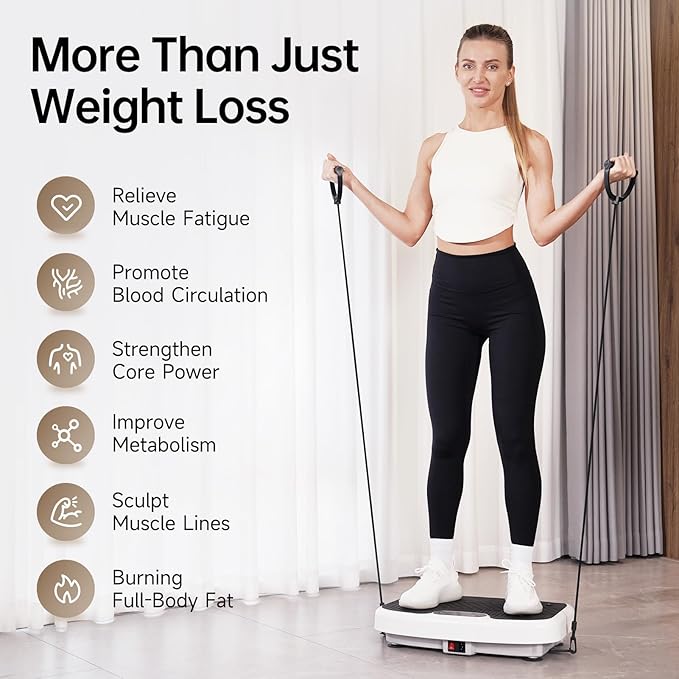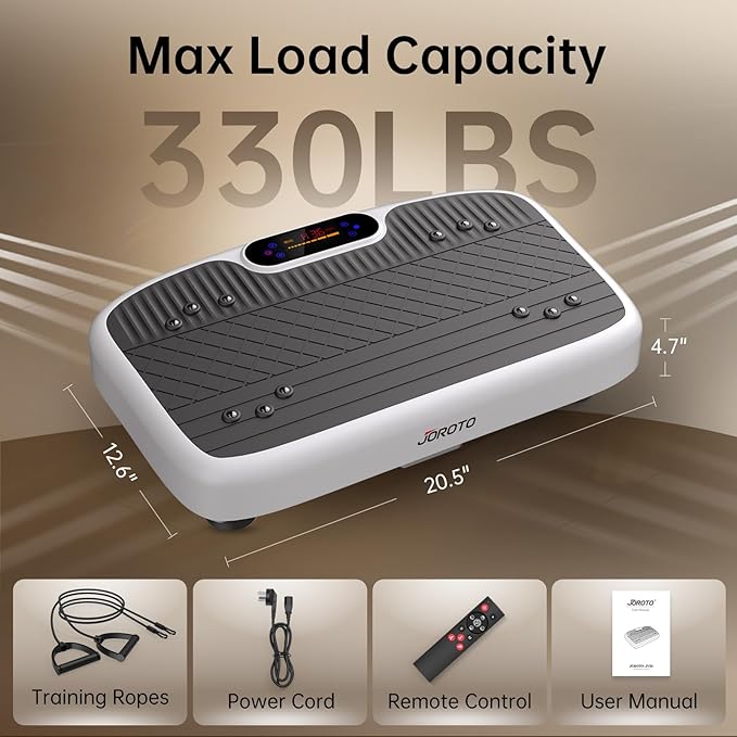 - 【Sturdy & No-Slip Materials】JOROTO vibrating exercise machine features with high stability and durability, and can withstand a weight of up to 330 pounds. Additionally, the top rubber surface ensures you prevent slipping while exercising. JOROTO vibration plates redefine workouts, offering a transformative experience.