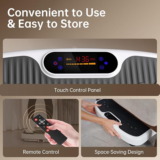 - 【Space-Saving & Easy Mobility】Conveniently designed, this vibration plate has a slim profile to fit tight spaces. Lightweight for easy transport and quick storage, it sets up and stows with minimal hassle. Four strong suction cups add stability, keeping it steady, reducing floor vibration transfer, and minimizing noise—even during intense workouts.