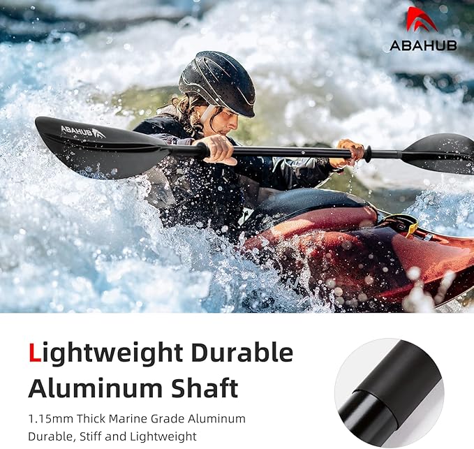 • MADE to LAST: Made of premium quality 1.15mm thick, 29mm diameter aluminum alloy shaft, and fiberglass reinforced polypropylene blades, total weighs 37oz (1050g). This kayak paddle is impact and erosion resistent, thus for great durability. It’s perfect for beginner and intermediate kayakers.