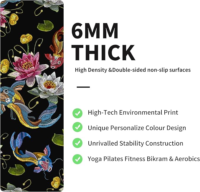 nuveti Yoga Mat Print Extra Thick TPE Non Slip Fitness Exercise Mat with Carrying Bag,72"x24" Extra Thick 6MM Exercise & Workout Mat for Yoga, Pilates Fitness and Floor Exercises