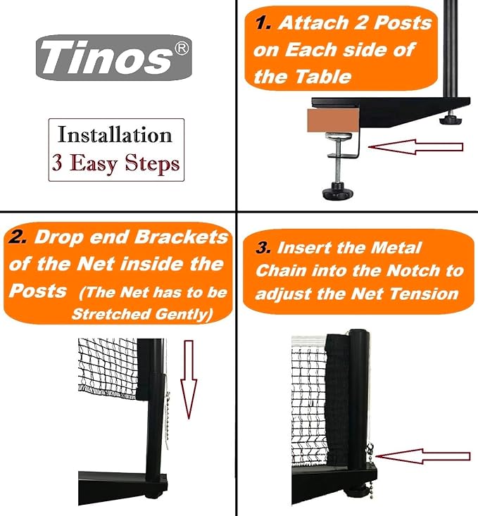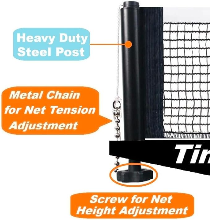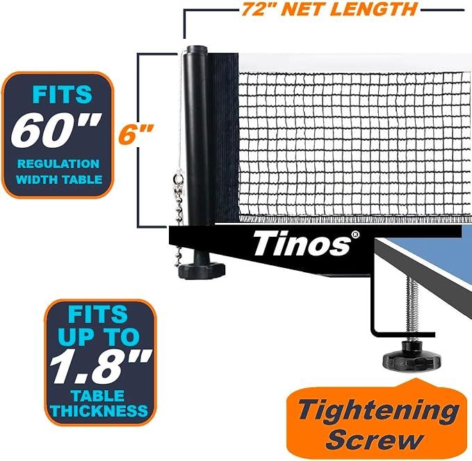 Tinos Professional Table Tennis Net fits 1.8" Maximum Table Thickness | Screw Clamp Ping Pong net & Post Set | Height and Tension adjustments