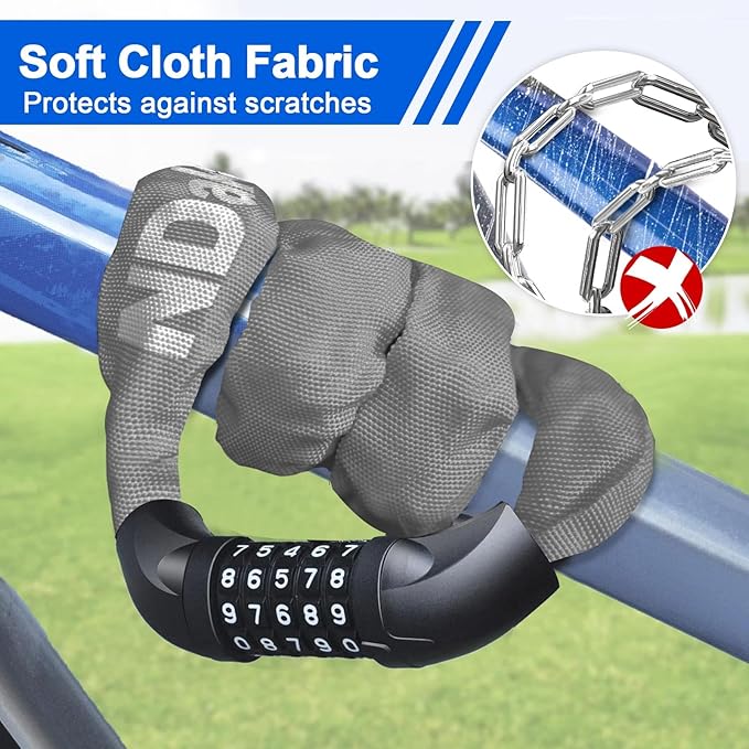 - SECURE & RESETTABLE: 5-digit resettable combination bike chain lock, much safer than other 4 digit locks. Easy to set your own personalized number combination.