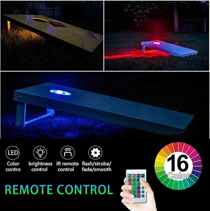 - ACCESSORIES: Easily add accessories like a Carrying Case, Hole Lights, Edge Lights, or all three. Both Hole and Edge Lights feature 16 different colors that can be easily set and changed with the included remote. Spice up your cornhole set with our great accessory add-ons!