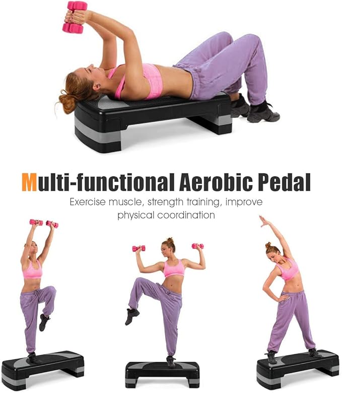 - 【Versatile Usage for Fitness】Our aerobic step platform can help you build endurance, boost exercise intensity, lose weight and improve cardiovascular fitness. What’s more, using it for aerobic exercise, lunge alternately, push-ups, and sit-ups will strengthen your arms, chest, back and leg muscles. It is suitable for people of all ages and fitness levels.