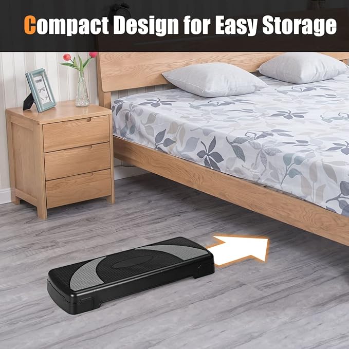 - 【Easy to Carry and Store】The compact and lightweight design makes it easy to carry, so you can not only do your daily workout at home but also bring it to the office or gym. The risers can be stored under the platform, reducing the footprint and making it easy to store in the corner of the room.