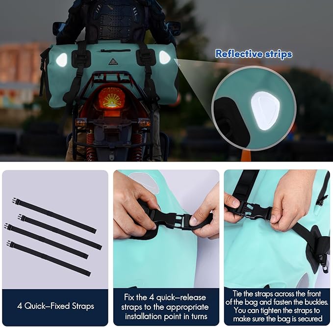 - Easy to Use and Quick Install: The dry duffel bag is equipped with four quick release straps, you can fasten the duffle bag anywhere, it is convenient to fasten on motorcycles, boats, kayaks and bikes, easy to clean and wipe, and instantly bright