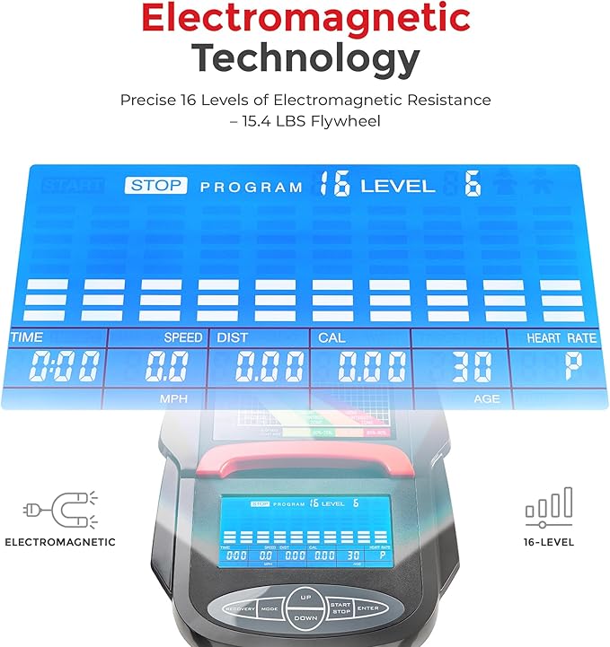 - 【16 LEVELS OF ELECTRO-MAGNETIC RESISTANCE】This elliptical trainer offers 16 levels of smooth, adjustable electro-magnetic resistance, giving you precise control over workout intensity. Enjoy faster response times and more accurate adjustments for a personalized exercise experience.