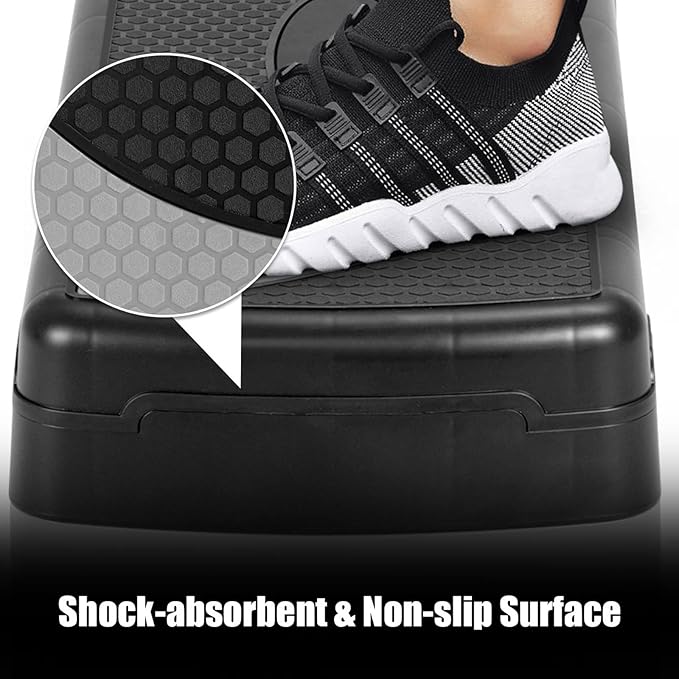 - High Security: The surface of our workout platform is covered by non-slip pattern, avoiding slide accident. Besides, the ergonomically designed platform is shock-absorb, decreasing the harm of shock caused by your weight.