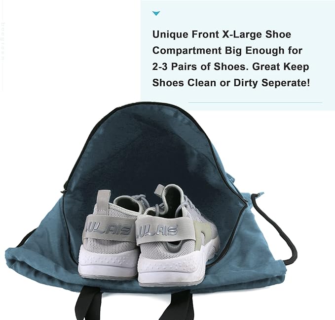 - MULTI-FUNCTIONAL POCKETS: The big shoe compartment in front of gym drawstring bag can hold two pairs of shoes; the smaller zipper front pocket is perfect for keeping an ipad, towel, and other items, besides, two sides mesh bags allow you to place a water bottle, umbrella easily. Inside of draw string bag, the zipper pocket can hold small valuables such as wallet, cellphone, keys and so on. Multiple Pockets help you to keep things to be placed by category, easy to be found.