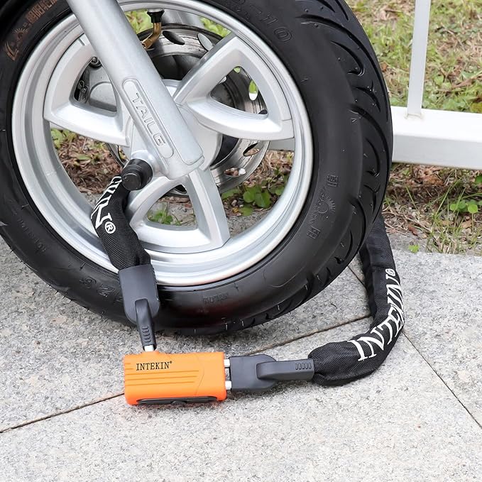- HIGH QUALITY HEAVY DUTY BIKE LOCK: The bike chain lock itself features 8mm/0.32inch square links which are made of high carbon structural steel link which is heat treatment hardening, thus the links will not be too brittle. The thick links have high tenacity for strong cut resistance, and will provide your valuable things with extra protection against bolt cutters.