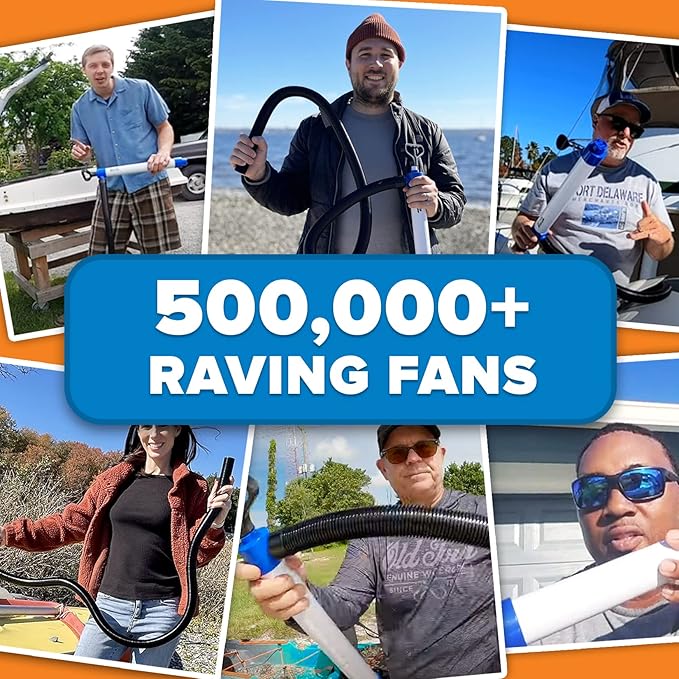 Manual Bilge Pump for Boats, Kayak, Canoe, Hand Water Pump with Hose, Portable Handheld Siphon Bailer, 25 Gallons Per Minute Suction, Marine Grade Large