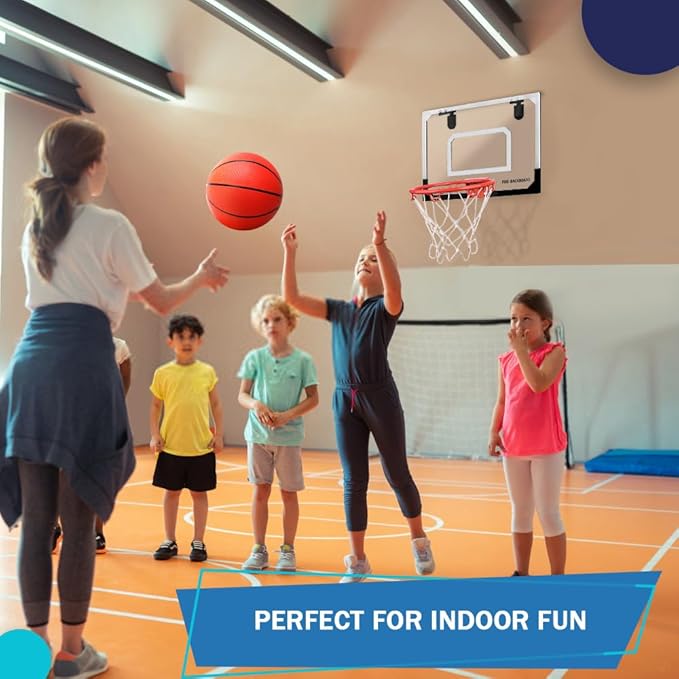 Indoor Basketball Hoop Set for Kids Adults, Mini Over The Door Hoop Set with 4 Mini 6" Balls for Wall Home Office, Upgarde Wall Mount Basketball Goal Sport Game for Boys Age 3-12 Years