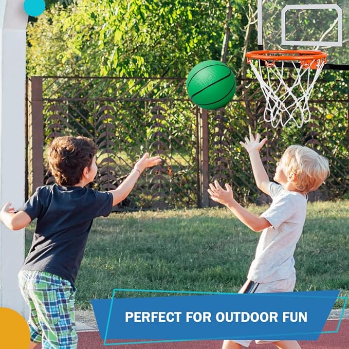 - Interesting Package: Includes instructions, 4 rubber balls, 9 inch steel ring, net, backboard(11.8x15.7in), and hardware. Bonus pump and pin. Perfect gift for basketball fans