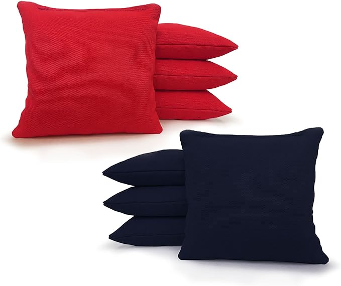 - 8 BEAN BAGS & CARRYING TOTE INCLUDED – Each Set comes with 8 Regulation Size Cornhole Bags (4 of each color). Bags Measure 6”x6” and are Filled with 15-16 ounces of Whole Kernel Corn. Made with Heavy Duty 12 oz Duck Canvas & Double Stitched for Extra Durability.