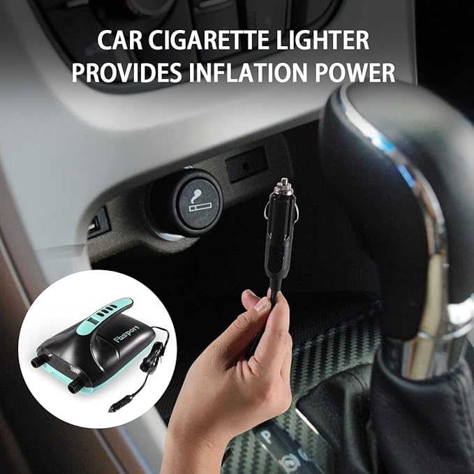 - Car Power Supply: The 3.4 m vehicle electric pump cord and plug are connected to the car cigarette lighter. Powered by the car, frees your hands and easy to inflate; Our paddle board pump is the choice of most people