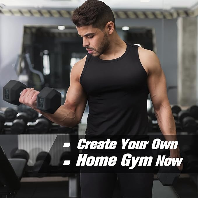 - Durable:The solid cast-iron core of our weight dumbbells provides reliable strength less likely to bend or break after intensive use over time. Durable and odor-free rubber coating reduces fall damage and protects your floor. Ergnomic and Contoured handle, with chrome finish, provides non-slip grip and security. Hexagon shaped ends keep the dumbbell weights from rolling away, easier to store.