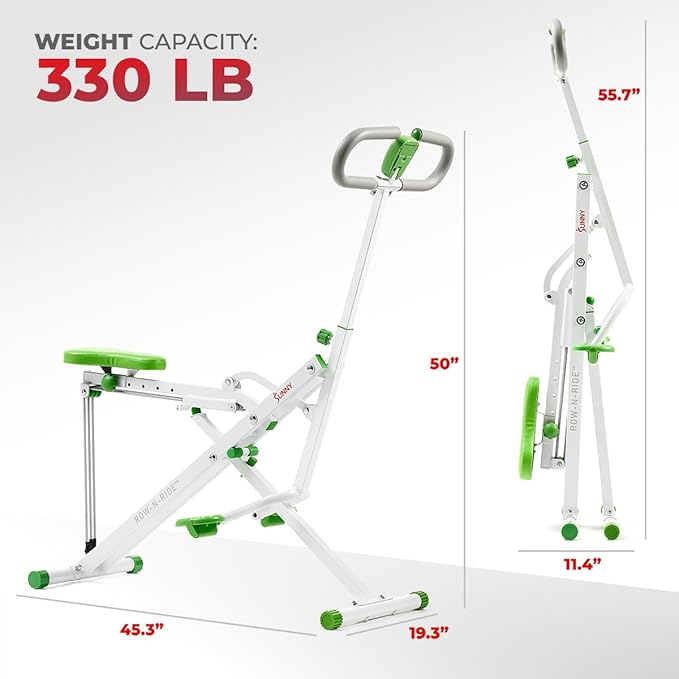 Sunny Health & Fitness Row-N-Ride Squat Assist Trainer, Foldable & Easy Setup Exercise w/Adjustable Resistance, Home Training Machine for Arm, Glute & Leg Workout, Optional Free SunnyFit App Connect
