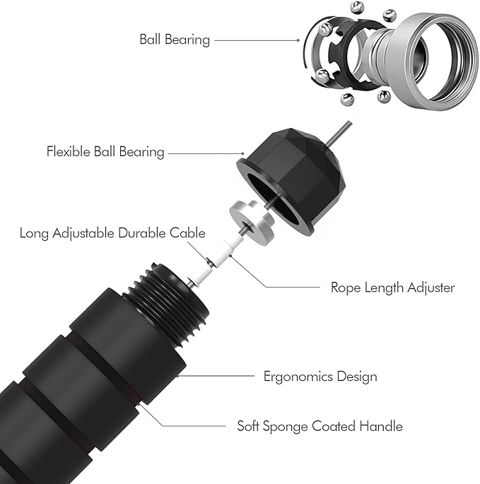 - Jump Fast, Jump Easily / / Built-in with high-quality ball bearings, the skipping rope provides you with comfortable jump exercises. It supports fast jumps while protecting you from any potential tangles, satisfying your needs for safety and convenience at the same time.
