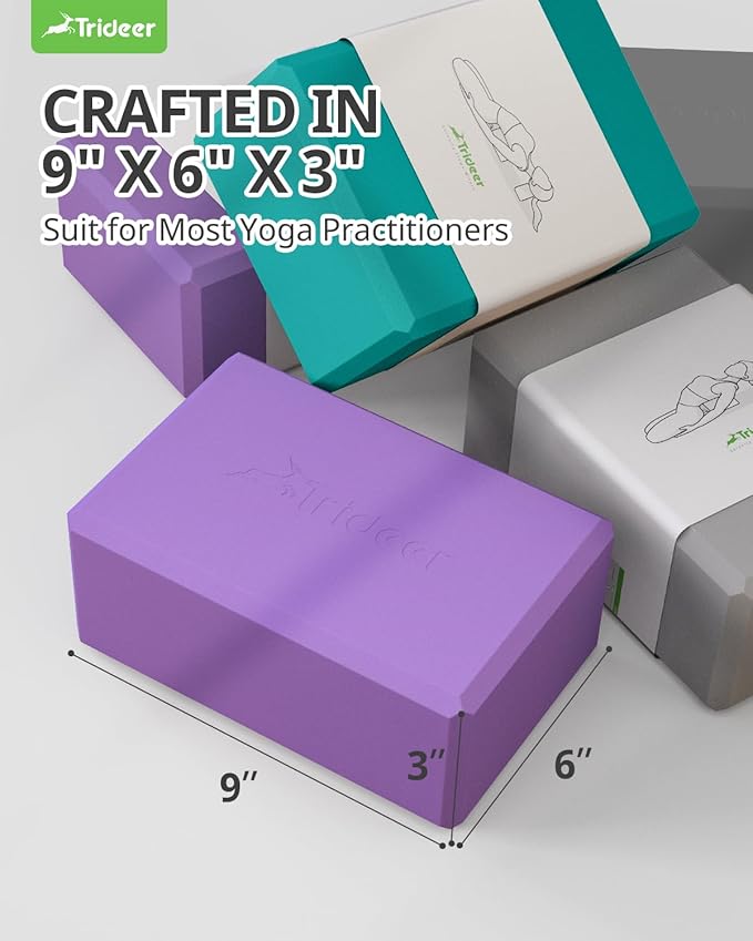 Trideer 9"x6"x3" Yoga Blocks, High Density EVA Foam Blocks 2 Pack, Supportive, Lightweight & Odor Resistant, Yoga Essentials and Accessories for Yogi & Yogini