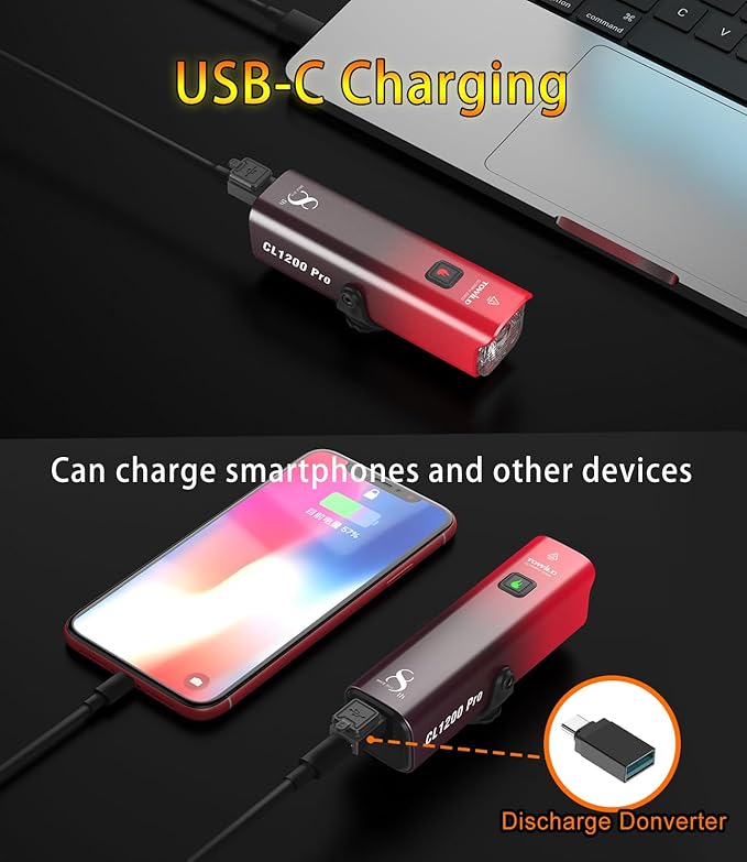- INCREDIBLY POWERFUL - CL1200 Bike light with 1200 lumen max output,which allows you to see further & clearer when night riding at high speed over 30km/H.Can be mounted upsidedown.Make night riding safer and more convenient