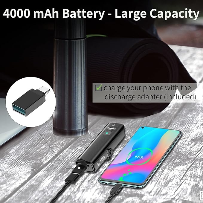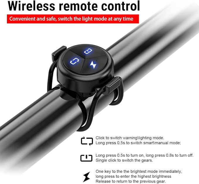 - RECHARGEABLE BIKE LIGHT - Build-in a rechargeable battery with 4000mAh,allows you to commute 6.5hr at 300 lumen,medium 600 lumen runs 3 hours and high 1200 lumens 1 and 3/4 hours.Fully charged in four hours with USB-C cable.Also can charge your phone and cycling computer