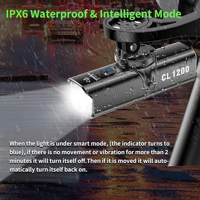 - INCREDIBLY POWERFUL - CL1200 Bike front light with 1200 lumen max output,which allows you to see further & clearer when night riding at high speed over 30km/H.Can be mounted upsidedown