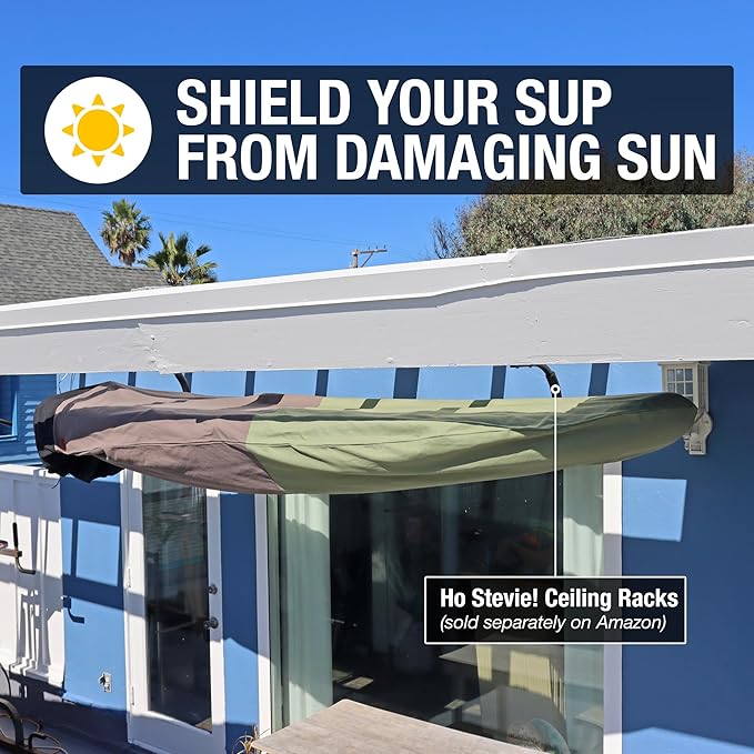 - COVER YOUR SUP - The sun's UV rays can cause your SUP to discolor, and even cause the fiberglass to deteriorate and flake off (see what happened to Stevie's paddleboard in the picture). Covering your expensive paddleboard with this canvas bag will protect it from sun damage. The canvas bag also protects your SUP board from dings and scratches while loading it onto the top of your vehicle, or storing it inside/outside between paddle sessions.
