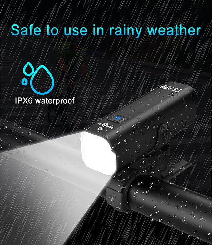 TOWILD Bike Lights for Night Riding,Compatible with Garmin/GoPro Mount,600 Lumen Bike Headlight,2000mAh Rechargeable Battery,Waterproof Bike Front Light for Commuter Cyclists-Fits All Bikes