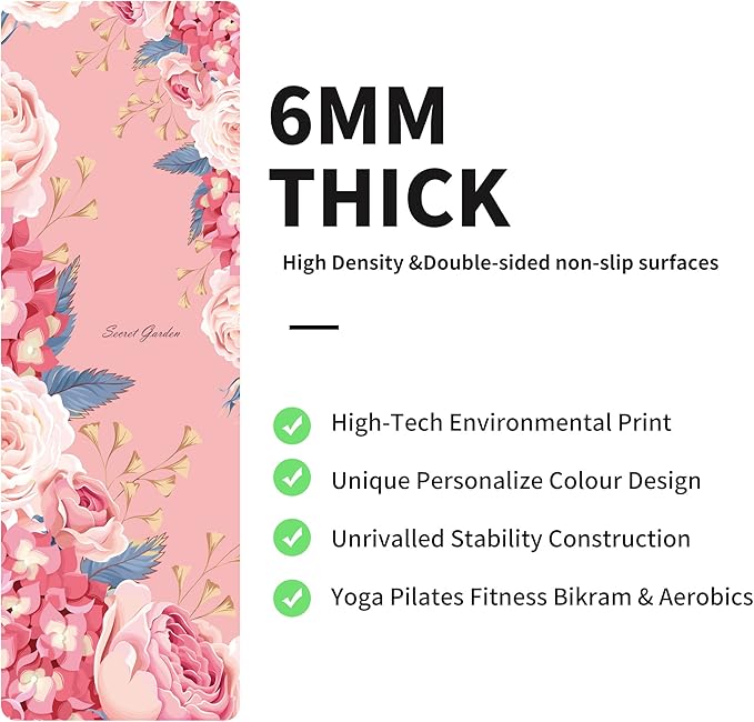 nuveti Yoga Mat Print Extra Thick TPE Non Slip Fitness Exercise Mat with Carrying Bag,72"x24" Extra Thick 6MM Exercise & Workout Mat for Yoga, Pilates Fitness and Floor Exercises