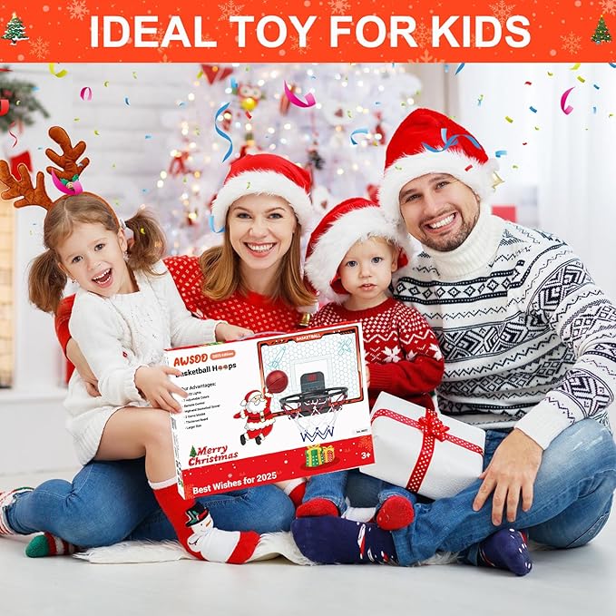 - Birthdays Gifts Toys for Kids: Indoor basketball hoop is an exciting and fun game for all ages. What's more, this basketball hoop comes with a beautiful Christmas gift box, which is perfect for giving to children. This game not only improves their basketball skills, but also cultivates important qualities such as perseverance, competition and teamwork. It is an ideal birthday or Christmas gift for boys and girls aged 5 6 7 8-12