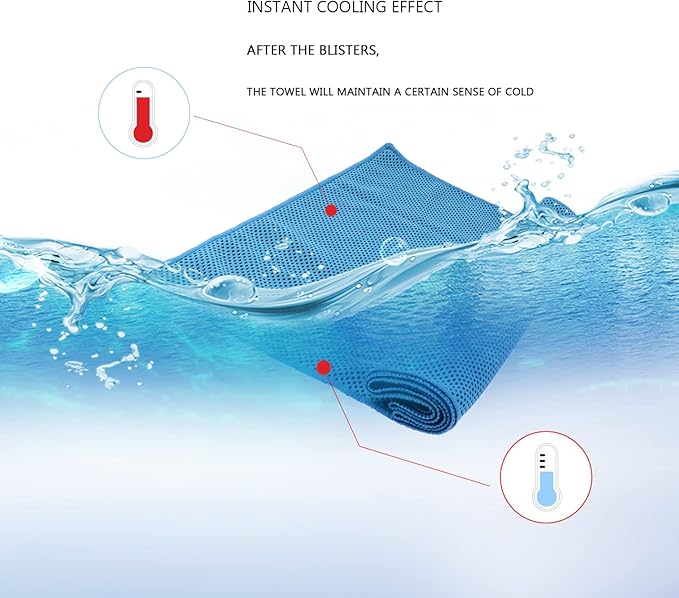 - MULTIPURPOSE SPORTS TOWEL: You may use your cooling neck wraps in many different ways! The 40''x12'' size gives you the chance to make it the perfect neck cooler, ice cooling scarf, instant heat relief bandana and cold headband. Whether you are at work, at the beach, at the gym, doing pilates at home or at camping, this cooling towel is the summer essential accessory for you.