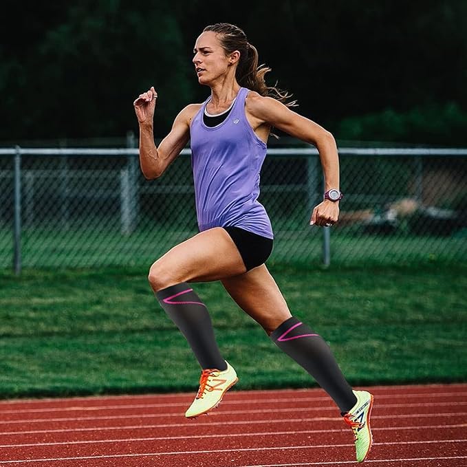 - Compression socks for men and women promote blood circulation by applying a certain amount of pressure to the legs. It reduces pain and swelling when you stand or run for long periods of time.