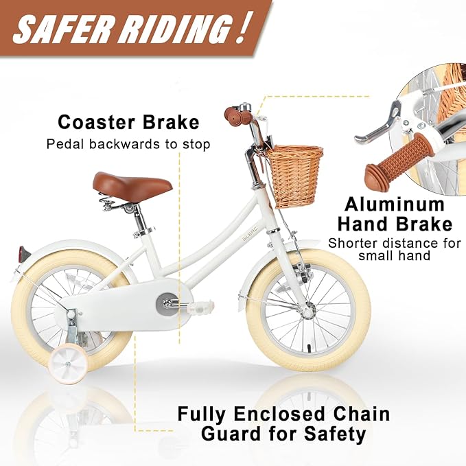 - 【Retro Style】The girls bike features a vintage-style metal frame and brown faux leather saddle, creating a unique and eye-catching look that will make your child a distinctive retro little rider.