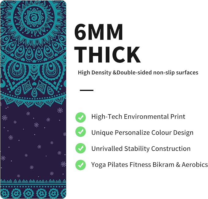 nuveti Yoga Mat Print Extra Thick TPE Non Slip Fitness Exercise Mat with Carrying Bag,72"x24" Extra Thick 6MM Exercise & Workout Mat for Yoga, Pilates Fitness and Floor Exercises
