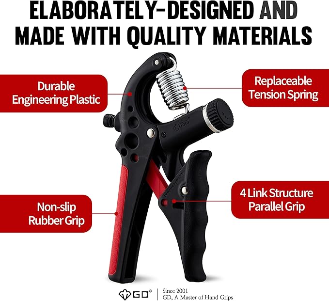 - [Dual Function for Strength and Gap Adjustment! Customizable Hand Gripper] GD Parallel Grip allows you to adjust both the resistance and the handle gap easily. You can adjust the resistance from 22 to 77 pounds, and the handle gap can be customized from 3.2 to 2.5 inches. Whether you're a child with weaker grip strength, a senior, or an average adult male, anyone can tailor their hand strength exercise to match their hand size and strength.