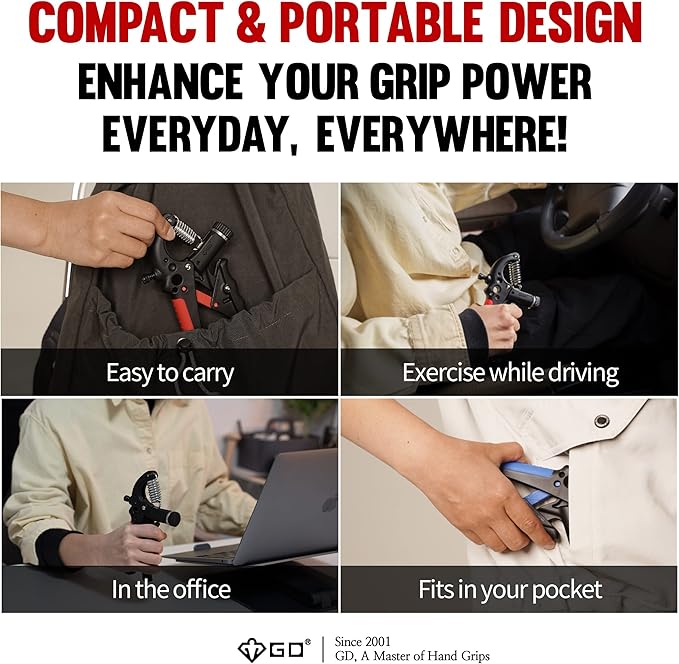 GD Grip2 Hand Grip Strengthener (Grip Strength Trainer) Adjustable Gripper (22~77lbs) Forearm and Wrist Exerciser Strengthener for Grip Strength