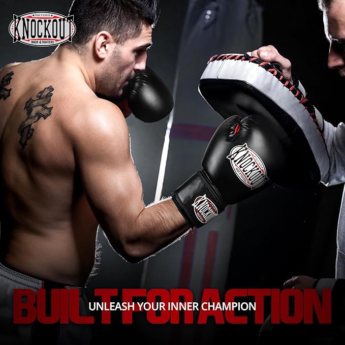 Knockout Gel Boxing Gloves for Men Women - Pro Training Sparring, Maya Hide Leather Muay Thai MMA Kickboxing, Adults-Kids Heavy Bag Workout Gloves for Boxing -Ultra-Wide Wrist Support 10 oz - 16 oz
