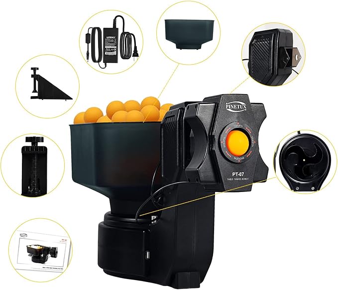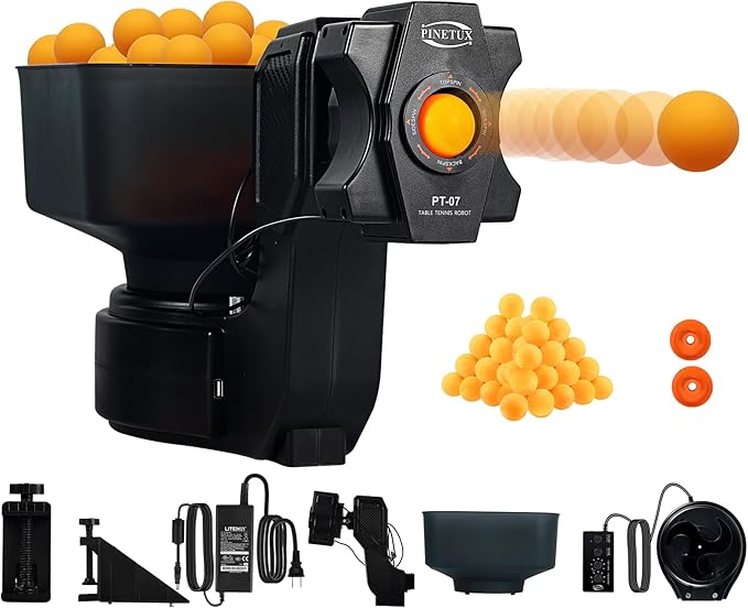 - 【Ping Pong Machine 】Our upgrade PT-07 ping pong ball machine large capacity, it can accommodate about 110 table tennis, Please note: Please use the International Standard balls with diameter of 40mm (1.57 inches). And please must use more than 15 balls to use this machine. If there are less than 15 balls, the balls will not come out.