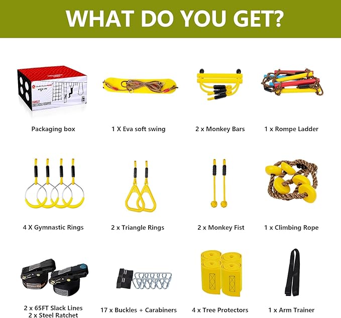 - GREAT FOR ALL AGES AND LEVELS: Whether you're a beginner relaxing for fun, or a professional athlete looking to improve your strength and balance, our Ninja Warrior obstacle course is the perfect backyard challenge for ninjas of all levels