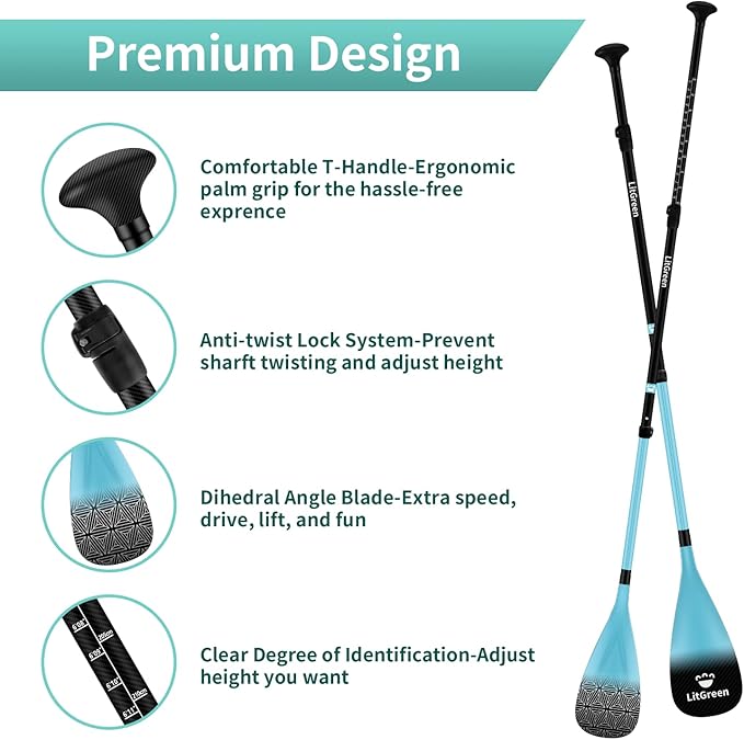 LitGreen Full Carbon Fiber SUP Paddles for Surfing, 1 x 3 Section Adjustable 25oz Lightweight Stand-up Paddle Oars for Paddleboard, Floating, Water Sport