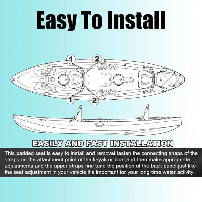 - 4 ADJUSTABLE STRAPS:Penban kayak seat has 2 straps in front, 2 straps in rear allowing the seat to be fixed in place according to different needs, give a wide range of adjustability to accommodate most any kayak, very easy to install and removal.