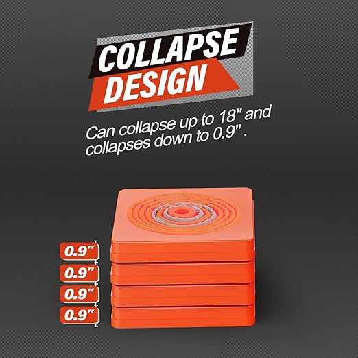 - Widely Use: These road cones can collapse up to 18 inches tall, and each cone with 2 reflective collars means people are unlikely to miss them, suitable for parking lots, driving Training, building construction, warning areas