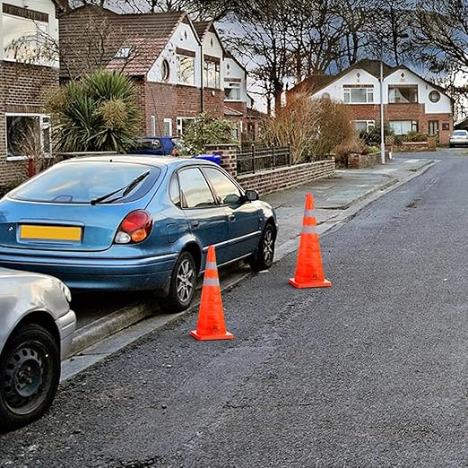 - Highly Visible: The bright orange safety color and 360 degree reflective collars make the parallel parking cones visible from a long distance during day or night